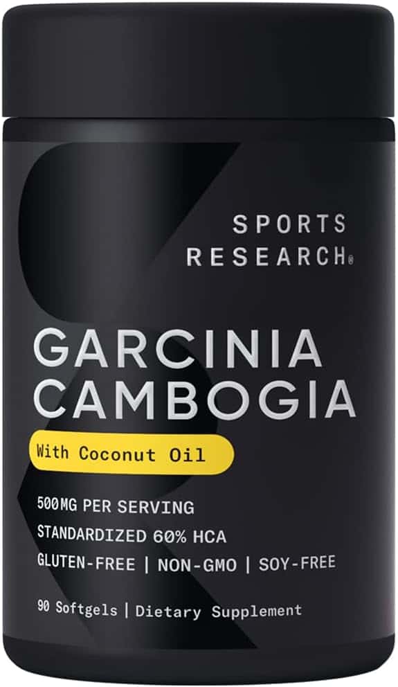 Sports Research Garcinia Cambogia- 500 mg per softgel with coconut oil for men and women.